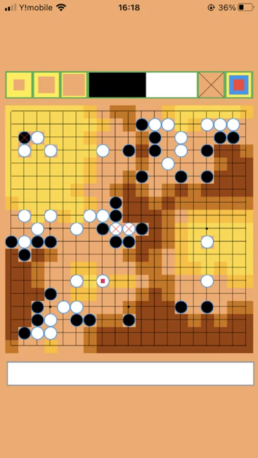 Areas surrounded by black stones are colored brown, and areas surrounded by white stones are colored yellow.