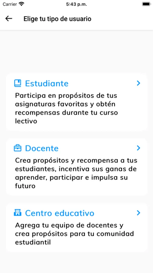- Registra tu centro educativo, agrega a tu equipo de docentes y crea propósitos para tus estudiantes como ferias científicas, eventos deportivos, olimpiadas de matemáticas, festivales de idiomas y recompensa a quienes más destaquen.