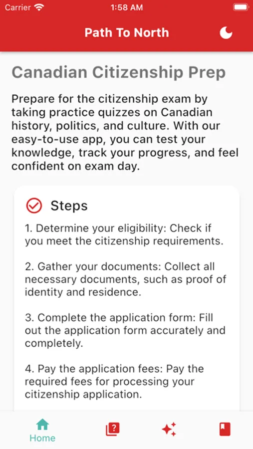 Introducing Path To North, your comprehensive guide to acing the Canadian Citizenship Exam. Designed with simplicity and efficiency in mind, our app provides an interactive and engaging learning experience for users preparing to become Canadian citizens. Path To North brings all the essential study materials and practice tools right to your fingertips, allowing you to study effectively and efficiently on your journey to citizenship.