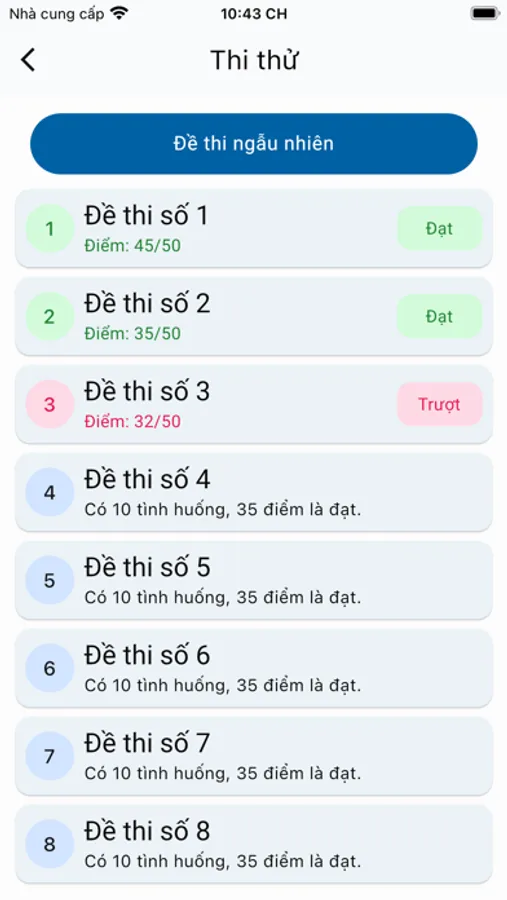 - Đề thi ngẫu nhiên: Giúp mô phỏng chính xác cấu trúc đề thi được sử dụng trong thực tế khi ghi sát hạch.