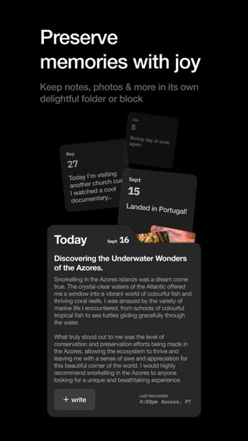 • Visual themes: Personalize your journaling experience with a selection of beautiful themes, crafted to create a visually pleasing and immersive writing environment.