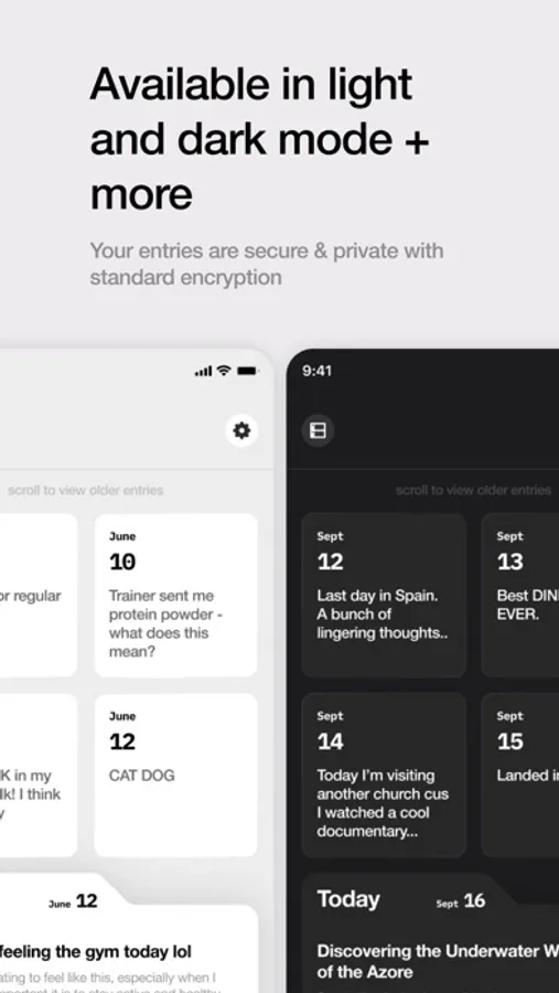 • Sync across devices: Your journals are safe, secure, and automatically synced across all your devices, allowing you to access your thoughts and reflections anytime, anywhere.