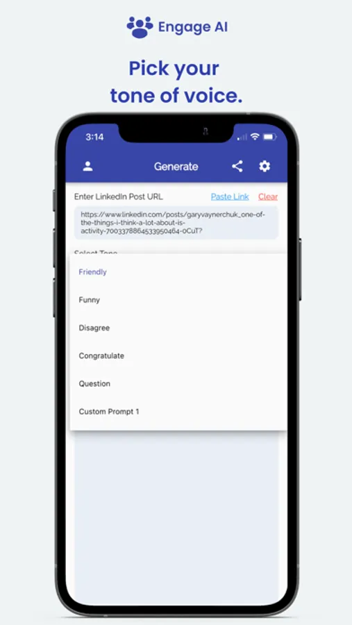 A: This AI for LinkedIn™ leverages natural language processing power to generate coherent, meaningful text responses. As with most generative AI, you need to feed Engage AI with the right prompt to get an accurate, or near accurate, response. You may use the default prompts created for you or create custom prompts to generate your desired responses.