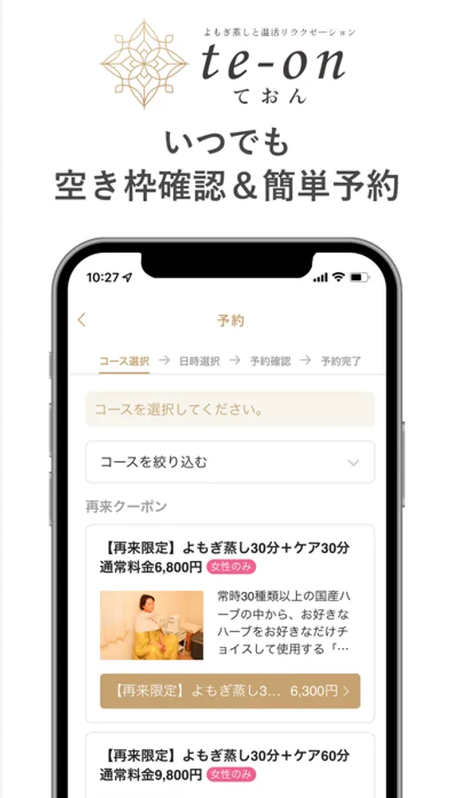 いつでもお手元のスマートフォンからご希望のお時間帯のチェック・ご予約が可能です。