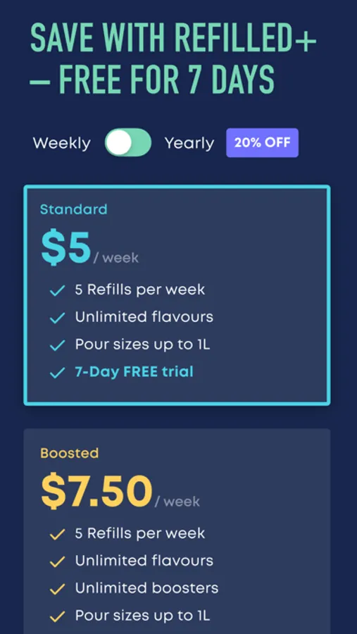 With the Refilled companion app you can elevate your drinking experience. The Refiller is capable of pouring over 100+ flavoured still or sparkling drink combinations on demand, without producing any single-use plastic waste. Using the Refilled app you can now keep track of your positive plastic impact, reduction in CO2 emissions, the Global Bottle Counter, your Local Leaderboard, manage your Refilled+ subscription, earn rewards and more!