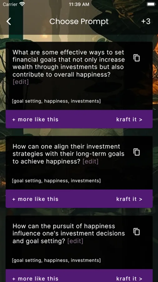 Think of the studio as your big pot to cook up new ideas, based on subjects and disciplines you’re passionate about. Choose a few categories when you first log on. When you add them to the focus field, that’s when the magic happens. Each category will generate multiple subcategories / and you can tap to add them.