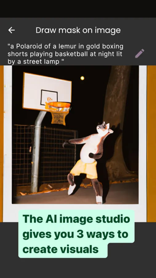 Image Studio gives you multiple methods to generate endless visuals, replacement, paint masks, outpainting and endless image manipulation.