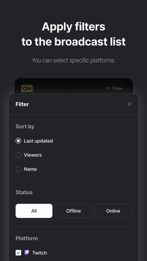 - Clicking on the broadcast card in the list will take you to the corresponding platform.