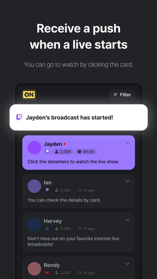 'Live Notification' is perfect for those who want to easily check and manage real-time live streaming news in one place.