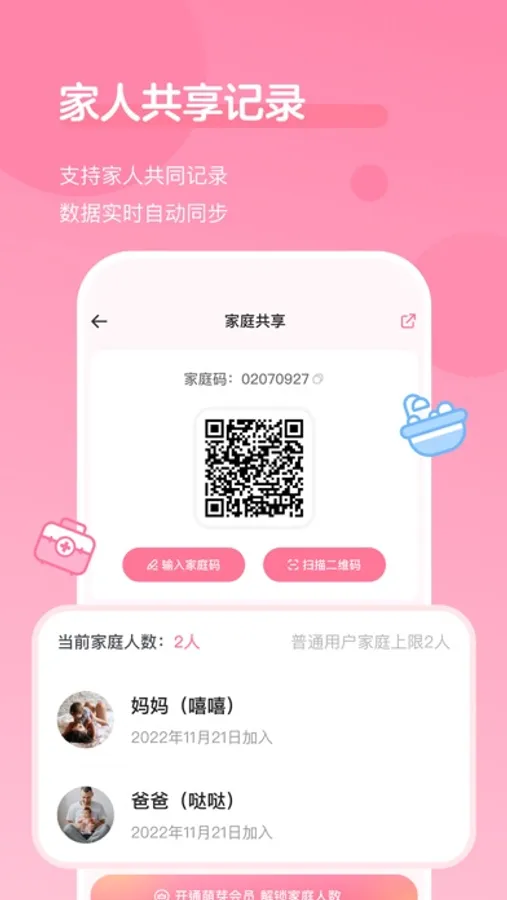+家庭共享:与家人一起共同记录宝宝的日常生活;
