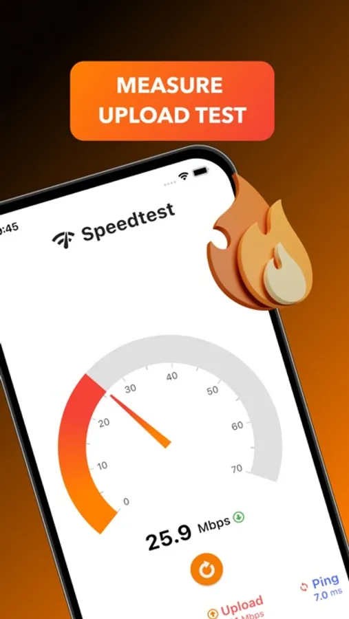 - Measure your download and upload speeds with just a few taps