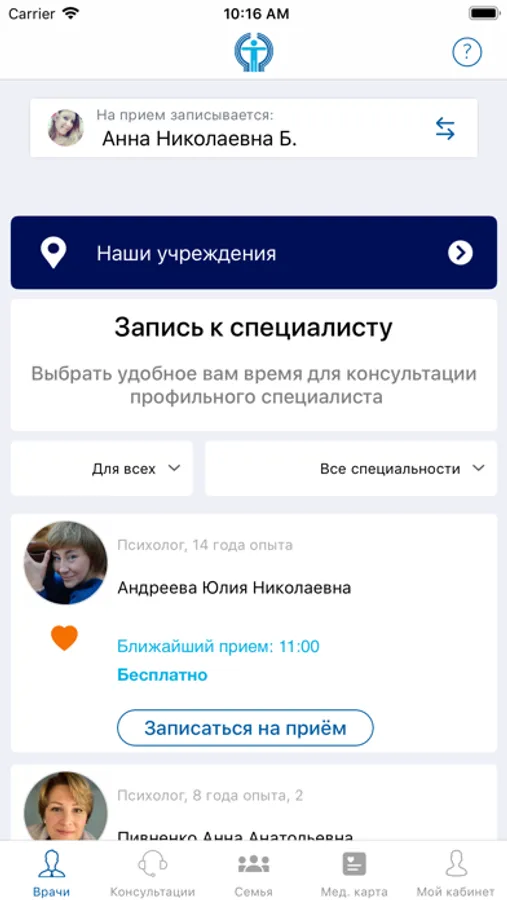 Сегодня в рамках сервиса работают более 300 профессиональных психологов, прошедших аттестацию. Мы тщательно отбираем специалистов для того, чтобы вы могли найти психолога для себя.
