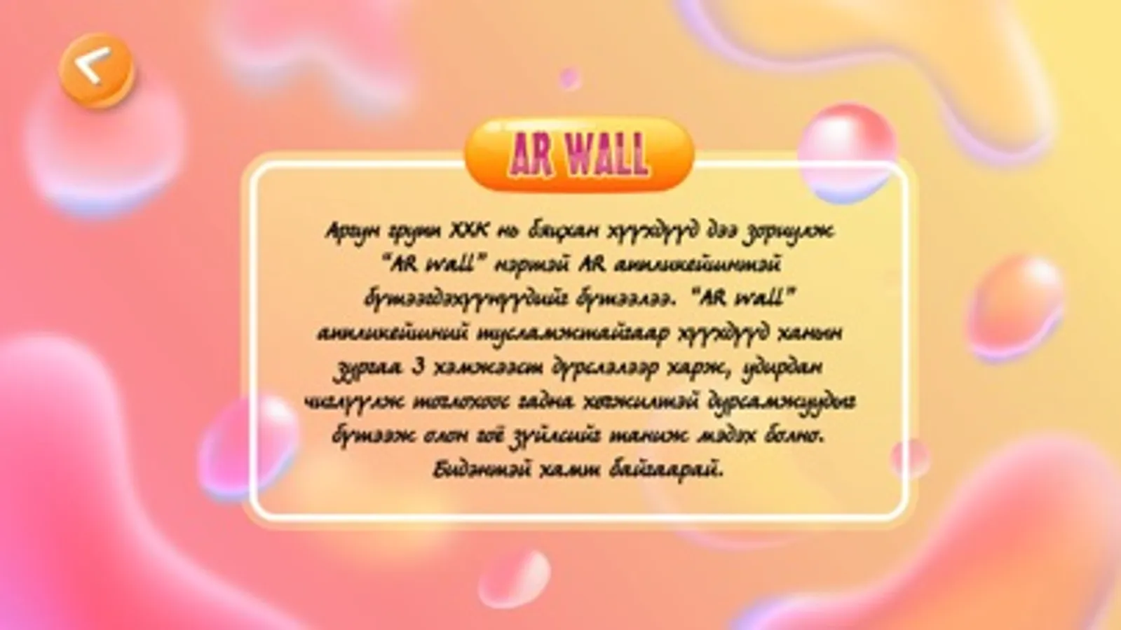 Аргун груп ХХК нь "AR Wall" нэртэй AR аппликейшнтэй бүтээгдэхүүнийг бүтээлээ. "AR Wall" аппликейшний тусламжтайгаар ханын зургаа 3D хэмжээст дүрслэлээр харж, удирдан чиглүүлж тоглохоос гадна хөгжилтэй дурсамжуудыг бүтээж олог гоё зүйлийг таниж мэдэх болно.