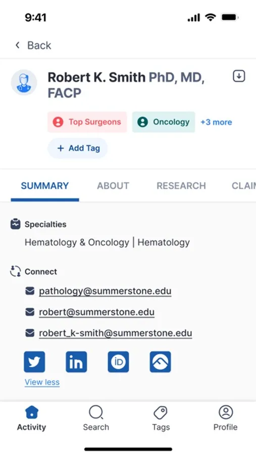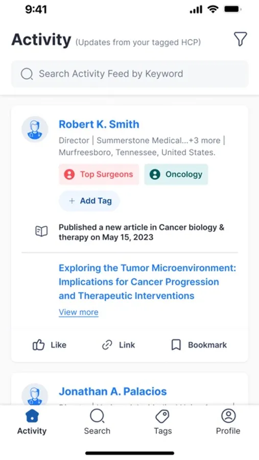 H1's Healthcare Professional Universe (HCPU) is the leading source of truth for life sciences companies to identify, segment, and engage with right doctors across all treatment areas globally. HCPU allows users to discover health care professionals (HCPs) through intuitive search and filtering and then provides insights about those HCPs including research, clinical expertise, presentations, social media activity, and more. HCPU also lets users tag HCPs to actively monitor updates to their profiles and stay up-to-date on the latest developments in a treatment area.
