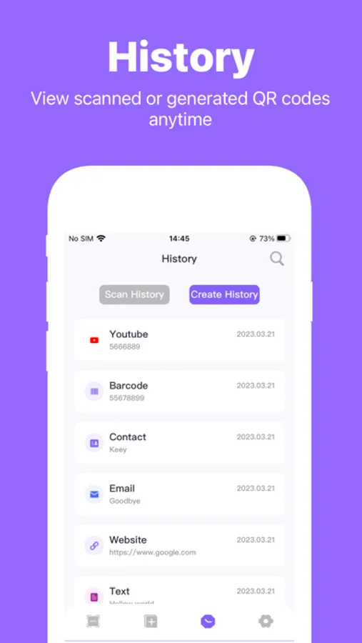 -Scan history and creation history: View your scan records and QR code creation history for easy retrieval of past information.
