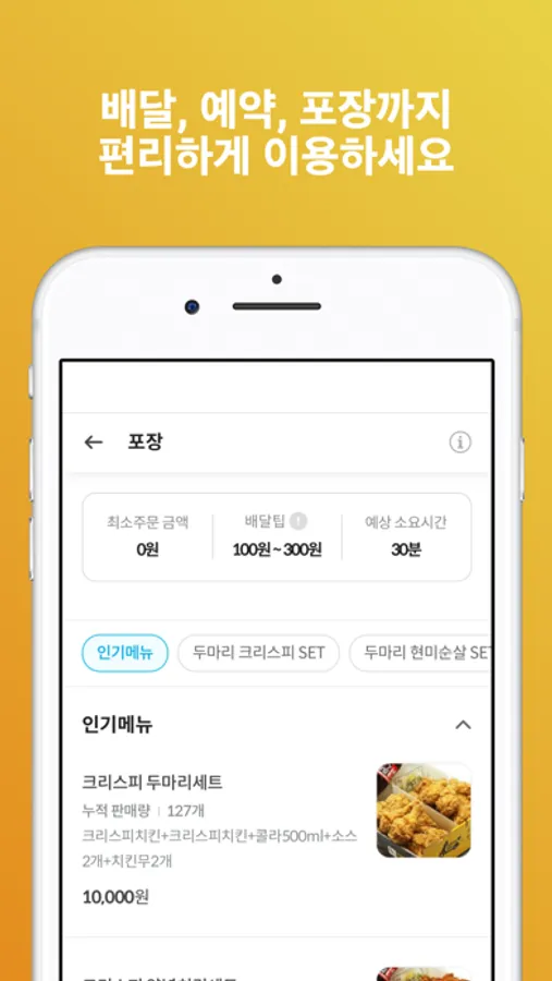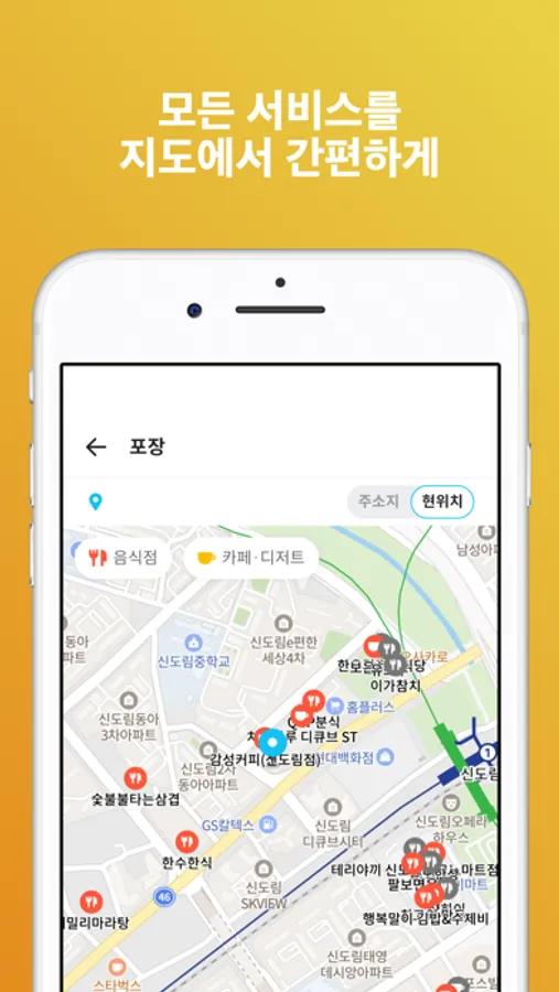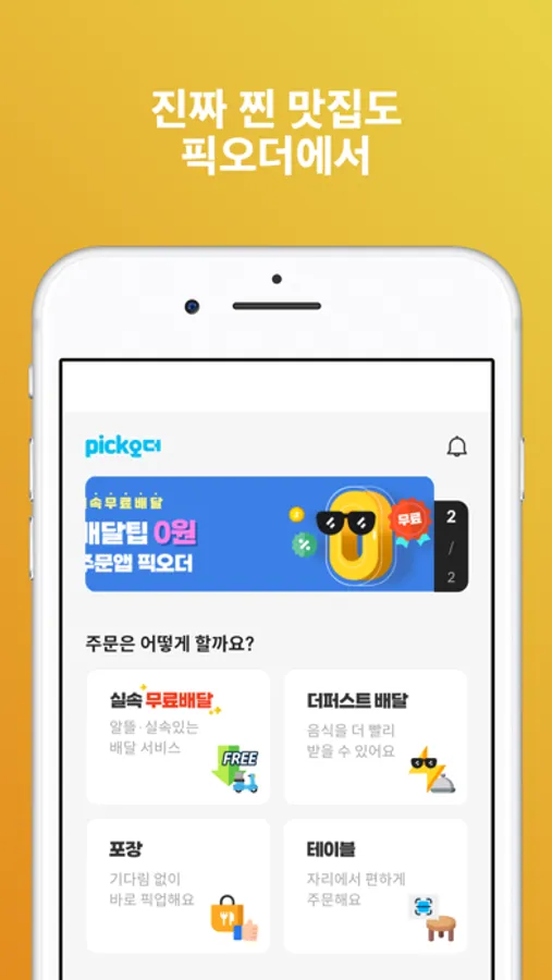 pick오더를 통해 주변 맛집에서 포장, 예약. 주문 서비스를 쉽게 경험하세요.