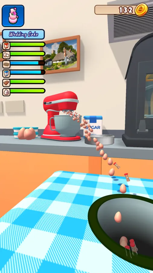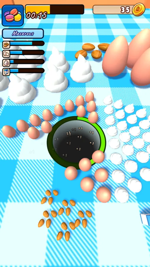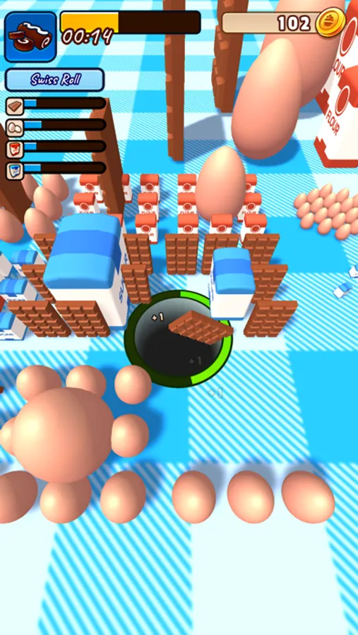 Travel around the table and grow your hole larger by swallowing up ingredients. Try and balance out your ingredients to make the perfect cake!