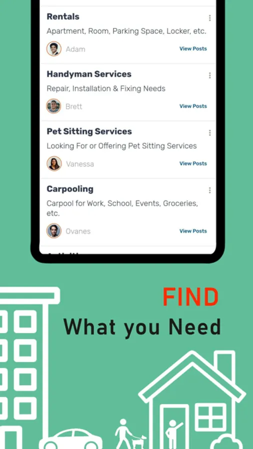 To minimize screen time, we’ve made Apna Finder’s functionality straightforward. Users simply select or create a community to join, and filter through the groups to find or create posts that meet their needs or interest. After that, send a message, you can buy, sell or pay on the app if you like and get right to meeting or connecting.
