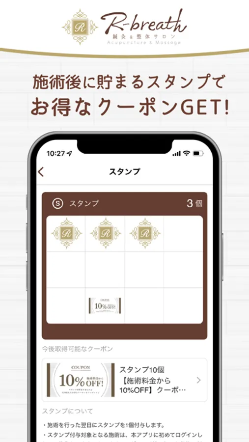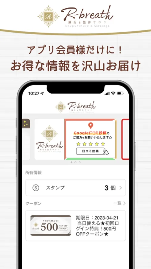 アプリを通してR-Breathの新着情報やお得な情報を受け取ることができます。