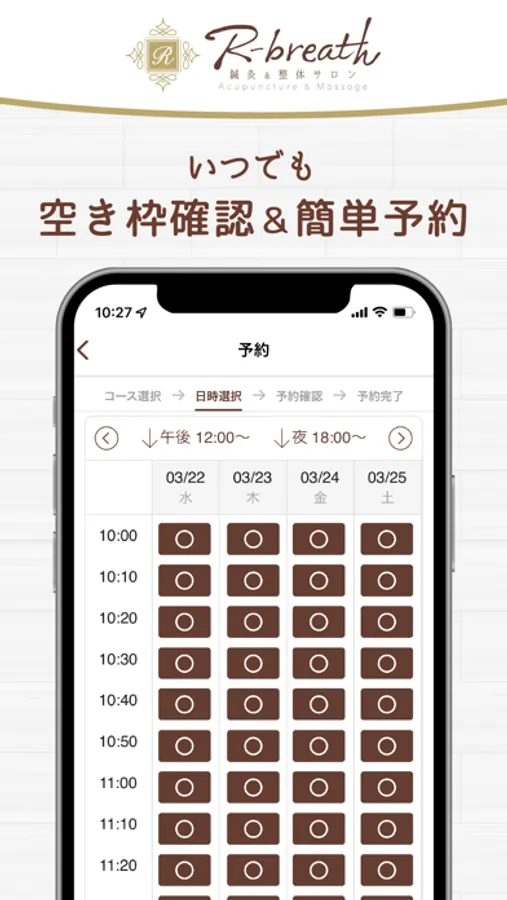 いつでもお手元のスマートフォンからご希望のお時間帯のチェック・ご予約が可能です。