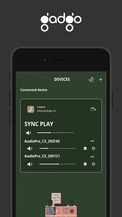Multiroom control: Effortlessly sync and manage Gadhouse products for the ultimate jam sessions of speakers across multiple rooms.