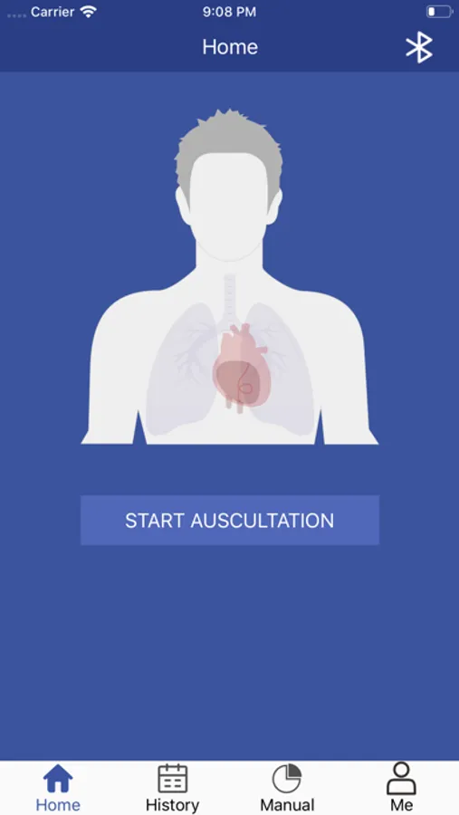 该听诊助手应用程序是为帮助医生存储、记录和回放心音、肺音及其他器管活动声响音频而设计。该应用程序通过蓝牙5.0与同电子听诊器连接,通过蓝牙BLE 协议获取电子诊器的取序列号、电池状态和心肺音传输采样数据流等基本信息。