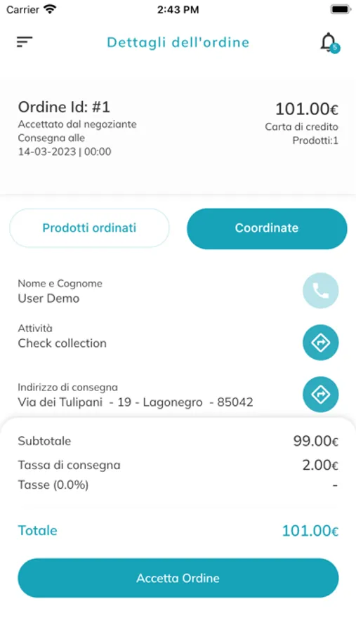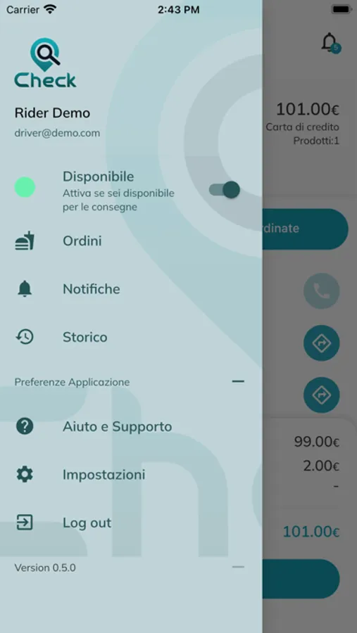 L'app di permette di visualizzare ordini disponibili, accettarli per consegnarli agli utenti finali, per tutti i negozi affiliati a Check Marketplace