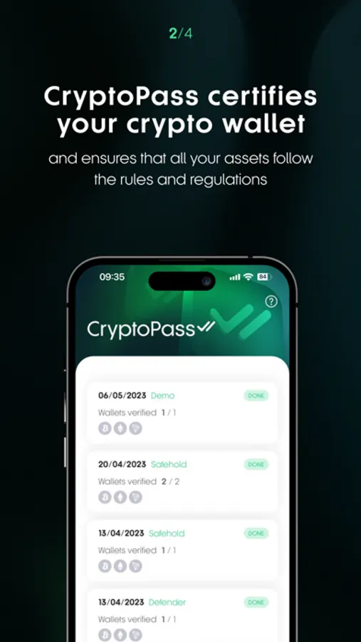 Comprehensive wallet certification: CryptoPass is designed to provide comprehensive certification of your crypto wallet, ensuring that your assets are legitimate and compliant with all necessary regulations. This makes it easy to stay on top of any potential risks or issues that may arise with your investments.