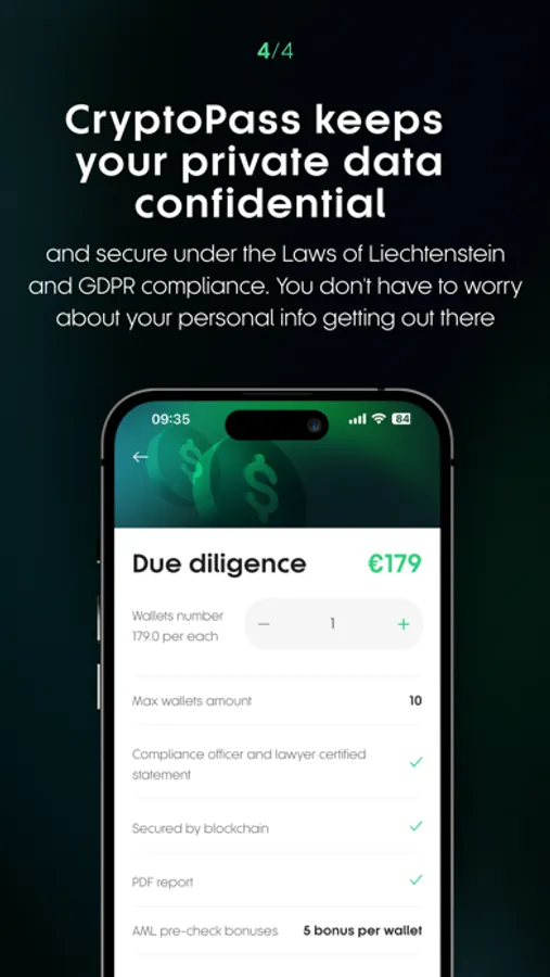 Confidentiality: CryptoPass ensures high levels of discreet personal data under the Laws of Liechtenstein and GDPR compliance. Your private data is kept confidential and secure.