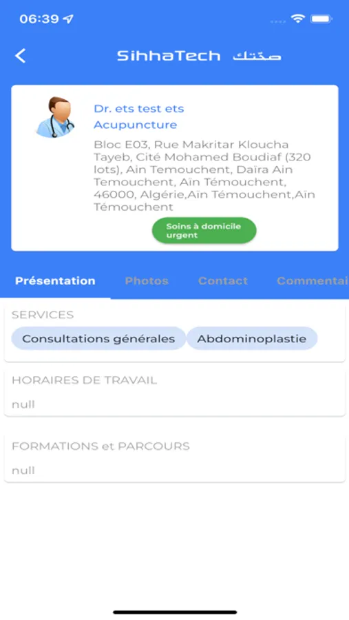 Infrastructure: Portail Web www.sihhatech.com ; Application mobile iOS.