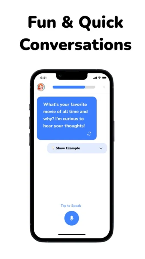 Enjoy personalized conversations relevant to your life and at your speaking level, covering the most interesting topics.