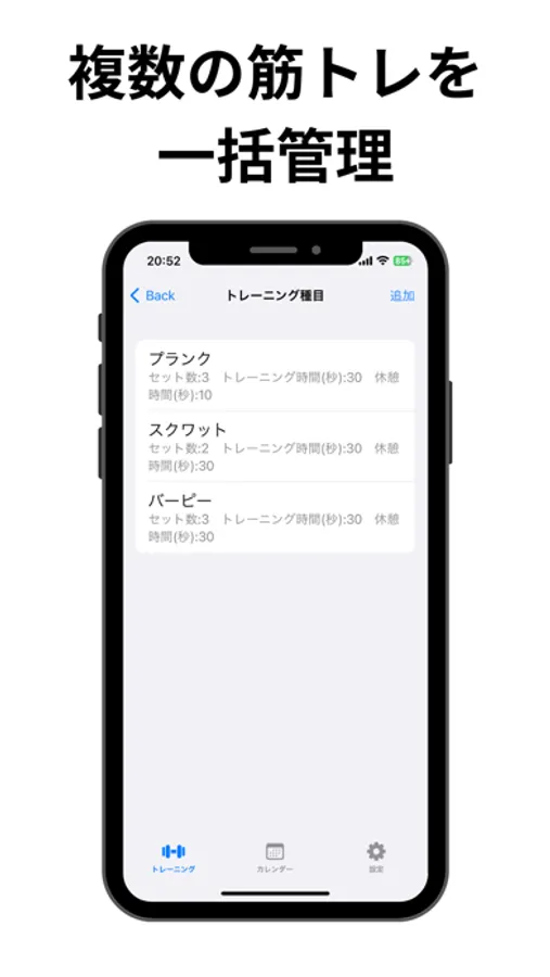 - 複数の筋トレメニューが登録できます。
