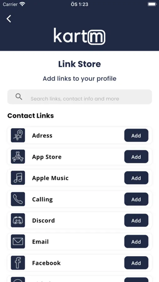 Kartim is a next-generation digital card application. Strengthen your connections in the digital world with this app that allows you to easily manage your NFC cards, social media accounts, and important connections. With its innovative and user-friendly interface, you can quickly share connections on your digital card and establish more effective communication with your colleagues, family, and friends.