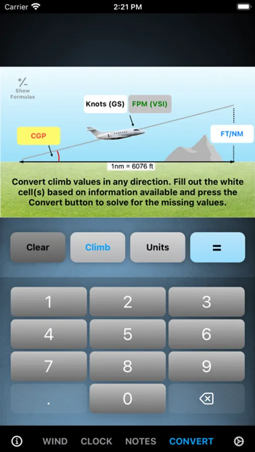 3. Climb requirement converter ("Climb wheel"): This customized calculator allows you to convert your climb requirement values. Simply input the values you have, press “Convert,” and let X-Wind solve for the rest.