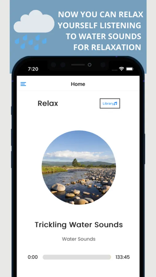 Water Sounds for Relaxation is a mobile application designed to provide a calming and relaxing experience to help users fall asleep faster and achieve a deeper, more restful sleep. The app features a variety of high-quality, looped recordings of ocean waves, rivers and different rain sounds, ranging from light drizzles to heavy thunderstorms; including some piano music with water sounds.