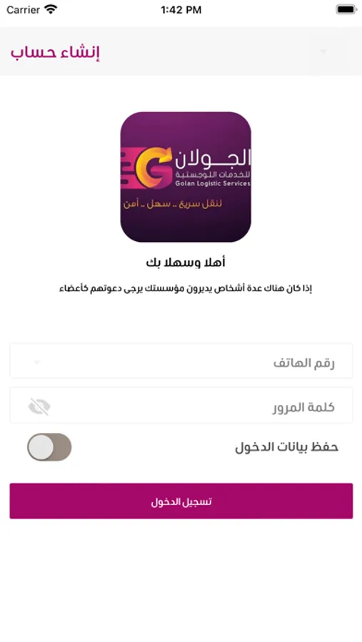7. Any driver or supplier of Golan Logistic company can download and use it after have an account from their app store .