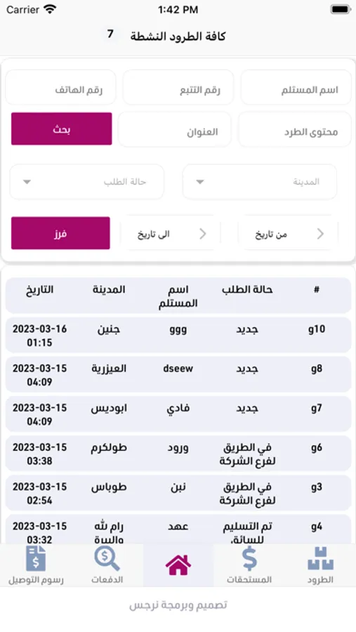 Also, driver users can check list of parcels to be delivery and arranging them based on parcel location or as they like, the user can make a call with customer and check each parcels list based on parcel stage.