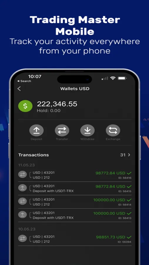 Introducing The Trading Master Mobile - The all-in-one mobile app for your storage, withdrawals and viewpoint of all your accounts from The Trading Master Forex Broker. A mobile app that provides Dashboard with all the key information, fast deposits, withdrawals, transfers, and accounts opening. You can secure your app with 2FA upon entrance. This and many more features are included!