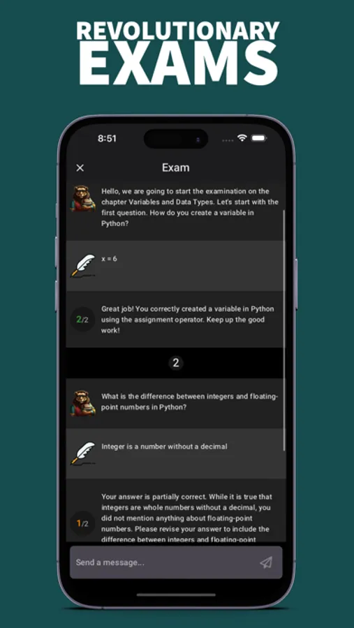 Our AI tutor, a cutting-edge artificial intelligence, is always on hand to help you grasp challenging concepts and answer your questions. And if you're gearing up for a crucial exam, you can take practice tests based on the subjects you've studied, with personalized feedback to help you excel.
