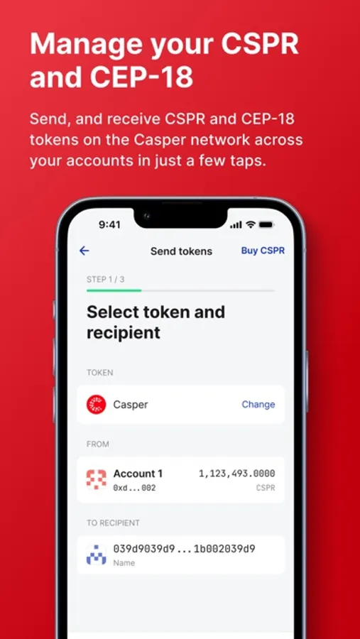 - Send and receive CSPR and CEP-18 tokens on the Casper network