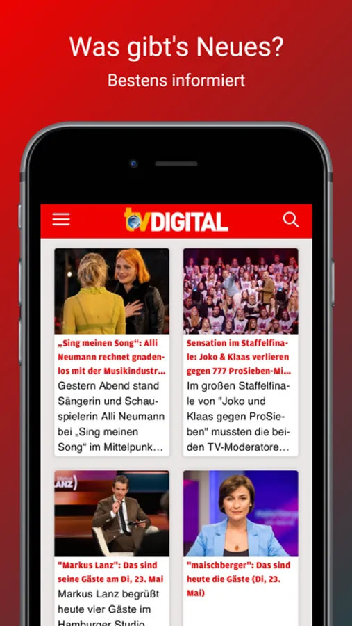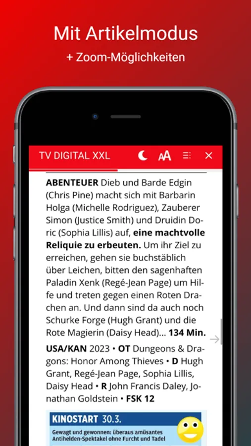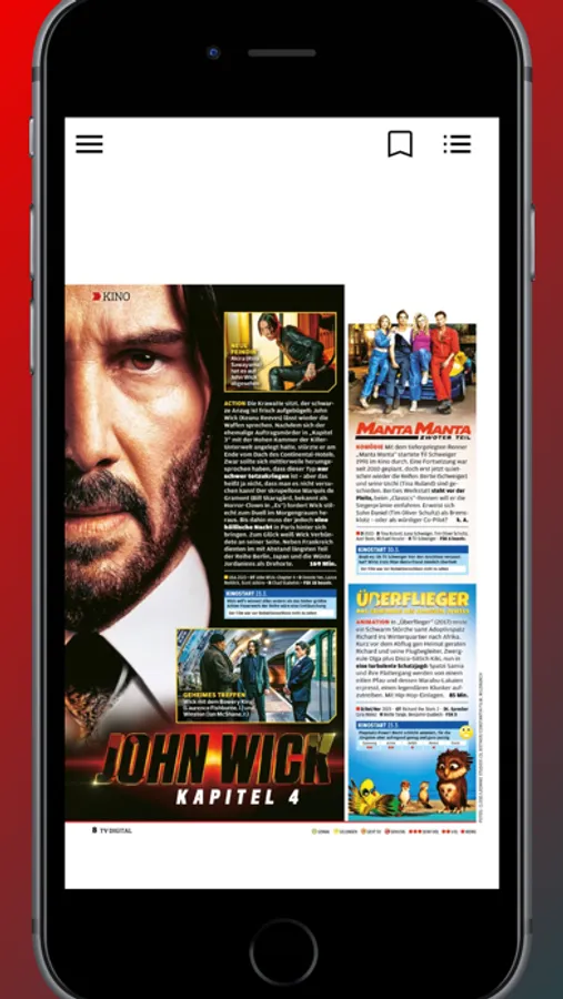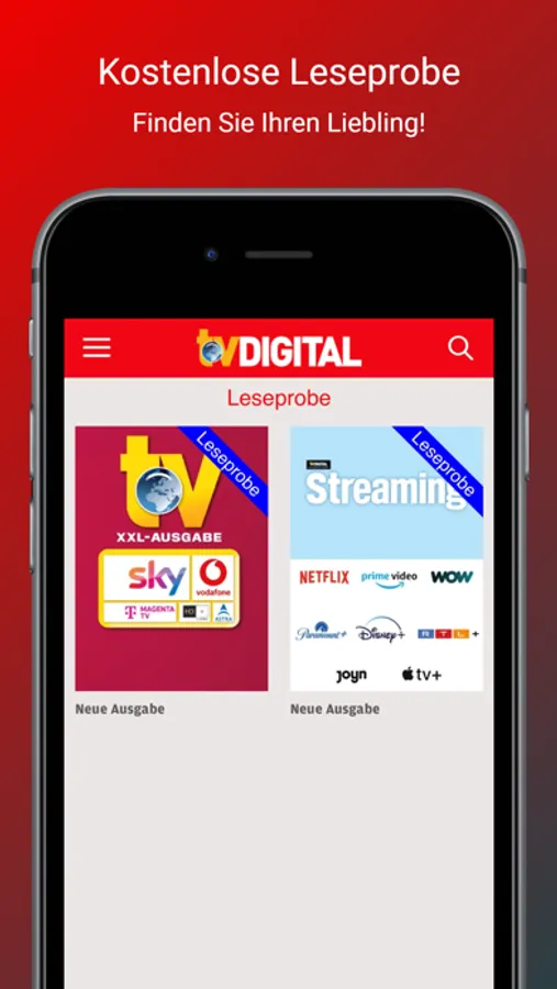 TV DIGITAL ist eine Programmzeitschrift mit 14-täglicher Erscheinungsweise und 3 in 1 Garantie: 14 Tage Free und Pay-TV + Deutschlands großen Streaming-Guide. In der E-Paper App finden Sie verschiedene Ausgaben: