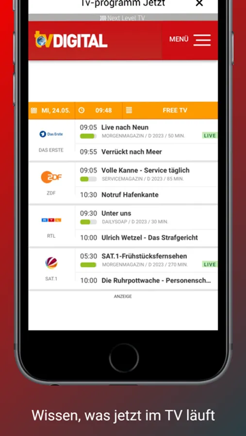 Bietet das komplette Programm von Kabel- und Satellitenfernsehen, Entertain und Sky sowie alle wichtigen HD-Sender.