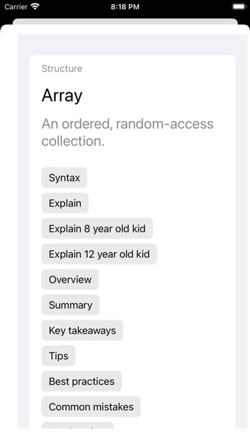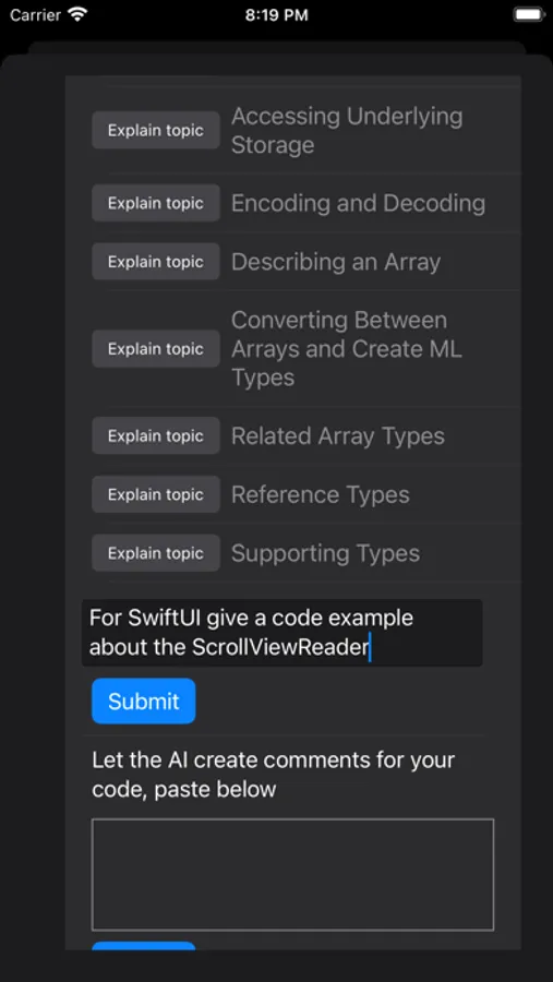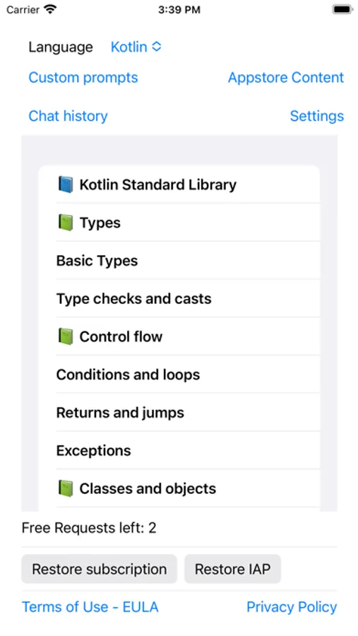 Introducing AICoding, the revolutionary app that uses cutting-edge AI technology (the openAI API) to generate high-quality code for the Swift, Kotlin, Java, and Bash programming languages. With AICoding, you can quickly and easily create robust and efficient code that adheres to best practices and coding standards. The app has the open-source Standard Library documents inside; just select a language, a topic, and an item, and use the many preprogrammed AI prompt buttons to generate code and explanations for you. You also have a free prompt to enter your own questions for the bot.