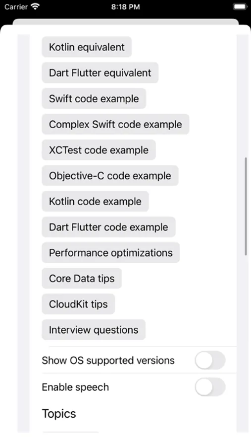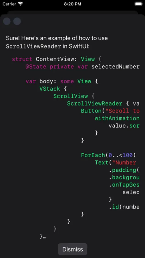 * Support for alternative languages: In addition to Swift, AICoding also supports equivalent code examples for other popular programming languages such as Objective-C, Kotlin, Java, and Dart. This makes it easy to switch between languages and leverage your existing skills and knowledge.