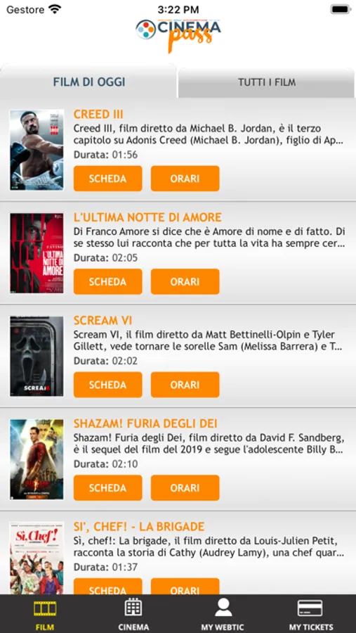 Applicazione di Crea Informatica, per l'acquisto e la prenotazione dei posti nel prestigioso circuito Cinema Pass: