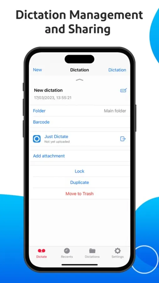 A free voice recorder app which allows dictation to be sent safely, direct to Just Dictate servers from any Apple device. Fully GDPR-compliant with password encryption features. Free yourself from the office – record and send from any location.