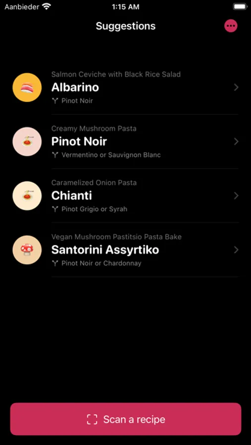 You do not need to create an account to use the app, and we do not collect any information that can identify you. The recipe photos you take in the app do not leave your device – the relevant information (the text of the recipe) is extracted locally on your device, and the photo is deleted immediately after the text has been extracted. Only the text that is processed from the photo is sent to our servers, to generate the wine recommendations.