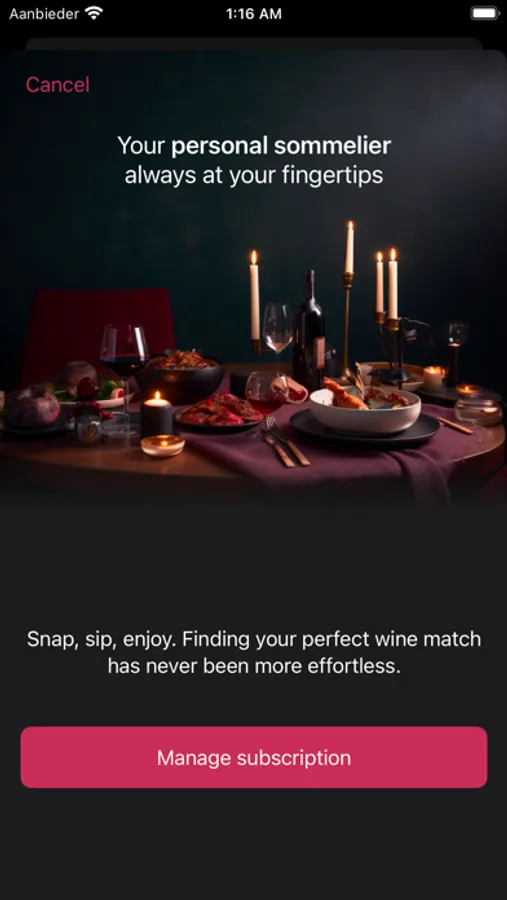 Try WineAI for free for up to three days with our small subscription, which covers our expenses for servers and AI and allows us to continuously develop the app with new features. With upcoming features such as a restaurant mode, WineAI is your go-to app for all your wine pairing needs.
