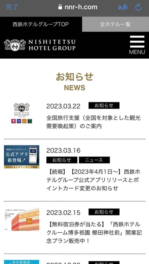 Introducing the official app that makes it even more convenient to use the hotels of Nishitetsu Hotels! We offer great services such as reservations for Nishitetsu Hotels and directly managed restaurants in Japan, point functions, and special coupons.
