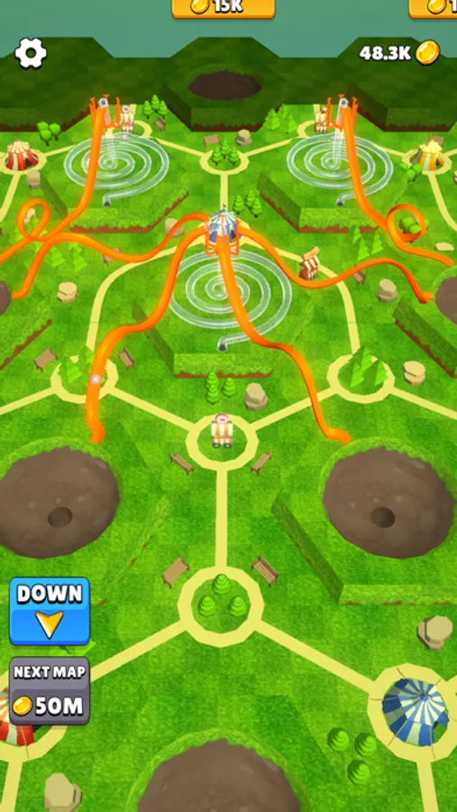 Open new islands, draw your slide from sources to hole, merge bumpers and create your own loop for earn more!
